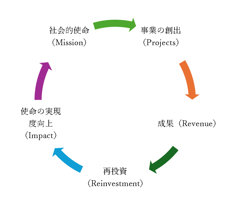 - 収益 → 再投資:得た収益をさらに使命の実現に使う