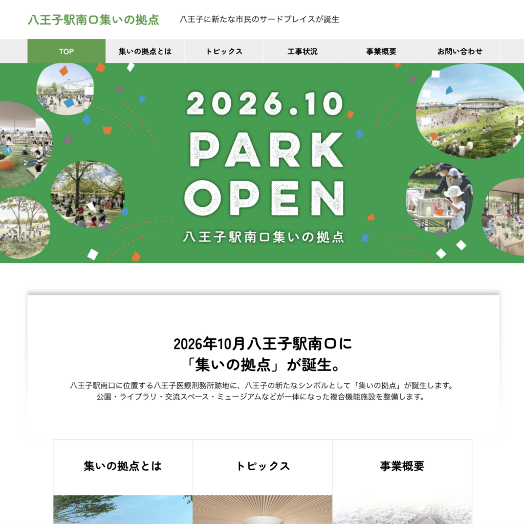 2026年秋、八王子駅南口にあった医療刑務所の跡地に、新たに公園、ライブラリ、ミュージアム、交流スペースが一体となった「集いの拠点」が誕生します。新施設では、地域の皆さんとつながり、様々なワクワクを生み出します。学べて、遊べて、交流できるほか、災害時には避難場所にもなります。暮らしを楽しく、人生を豊かにする場所、ぜひご期待ください!