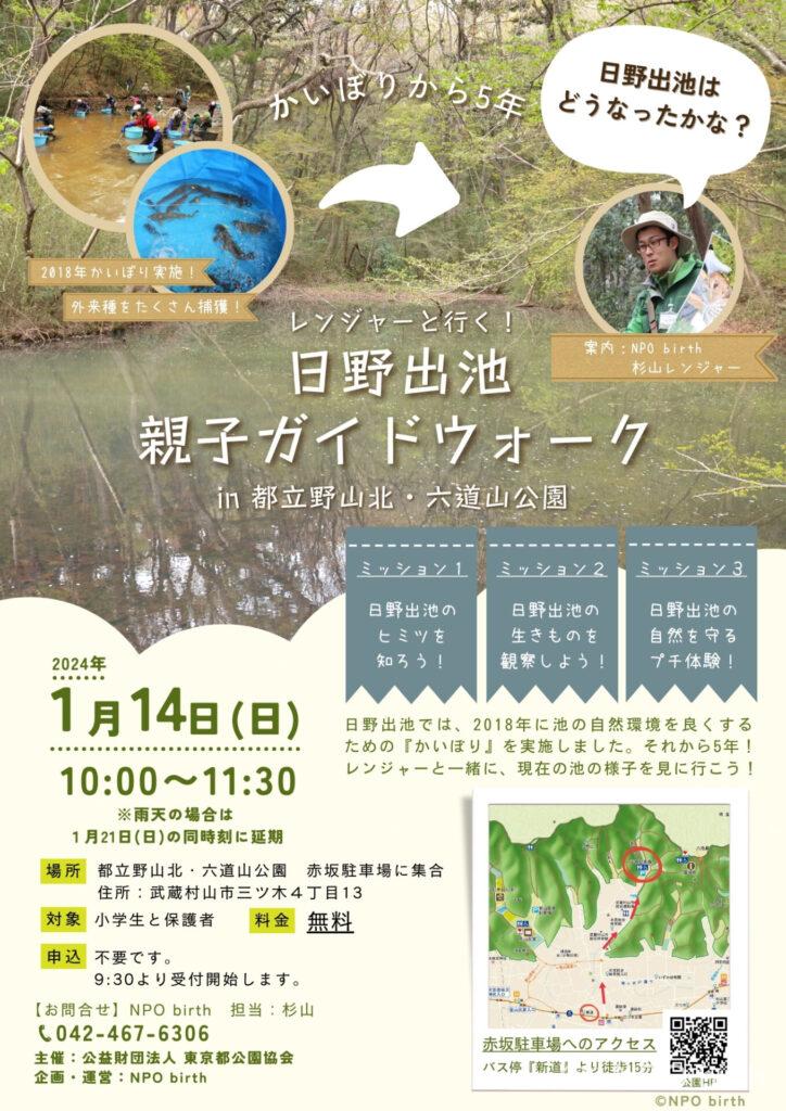 武蔵村山市 都立野山北・六道山公園イベント「レンジャーと行く!日野出池 親子ガイドウォーク」開催のお知らせ