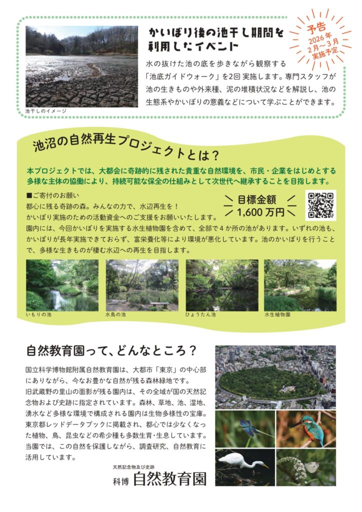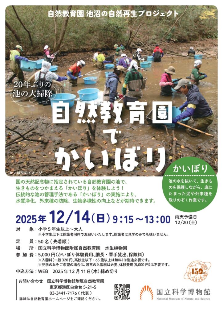 【参加者募集】12/14 国立科学博物館附属 自然教育園 かいぼりイベント
