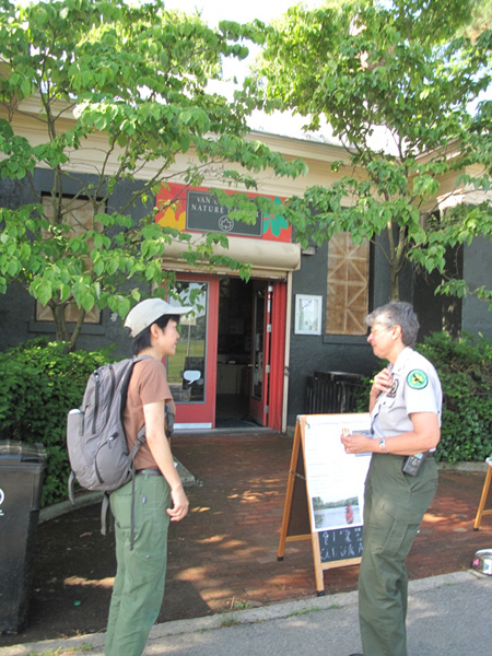 彼女の話によると、市全体でアーバンパークレンジャーはいま、25人。夏はカヌーなどのプログラムがいっぱいあり、とっても忙しいとのこと。一緒に話をしたシーズナルレンジャー(夏限定雇用のレンジャー)のビルは園内のカヌープログラムへ、彼女はビーチにあるネイチャーセンターへ出かけていきました。
