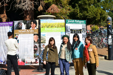 最後は、大学の門の付近で集合写真。ここでは、様々なサークルの勧誘がされていましたが、ほとんどが政治的なサークルであることもBerkeley校の特徴です。